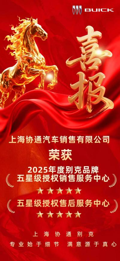 3 月 5 日,在上汽通用别克于深圳举办的年度年会中,上海协通汽车销售有限公司在全国众多经销商中脱颖而出,斩获 2025 年度上汽通用别克品牌“五星级销售服务中心”和“五星级售后服务中心 两项大奖,荣膺“双五星”经销商称号;同时,上海协通鹏骋汽车销售服务有限公司斩获 2025 年度上汽通用别克品牌“四星级售后服务中心”荣誉,双喜临门,彰显协通别克的服务硬实力!